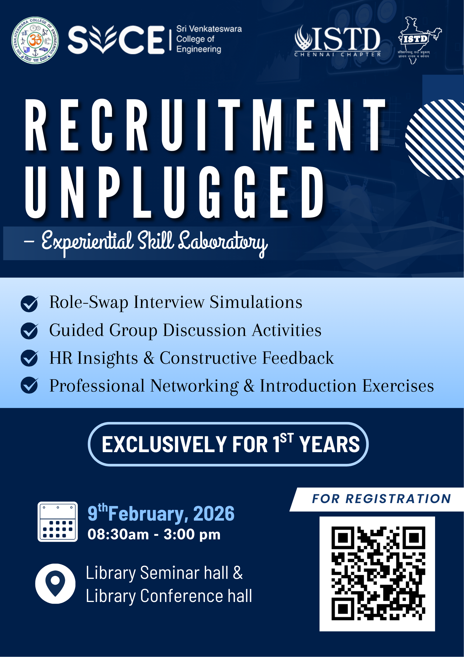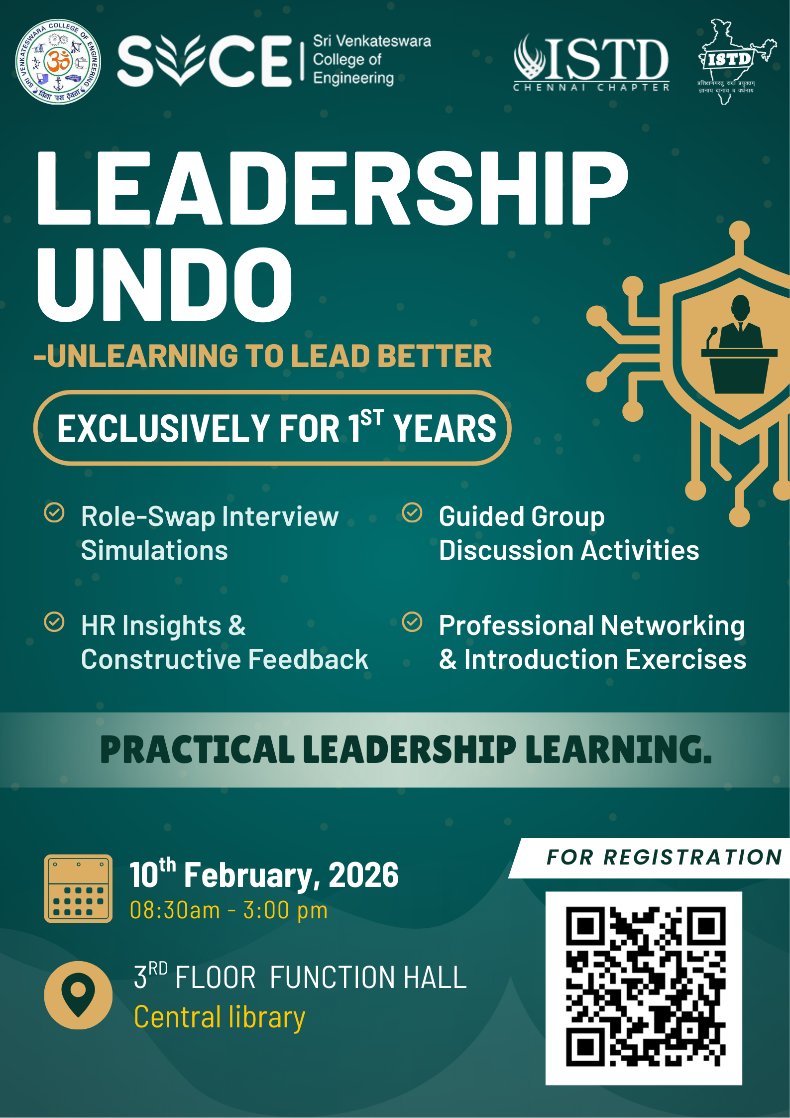 We are happy to invite you all for the 4th & 5th programme of Indian Society for Training and Development - SVCE Student Chapter to be conducted for first year students on