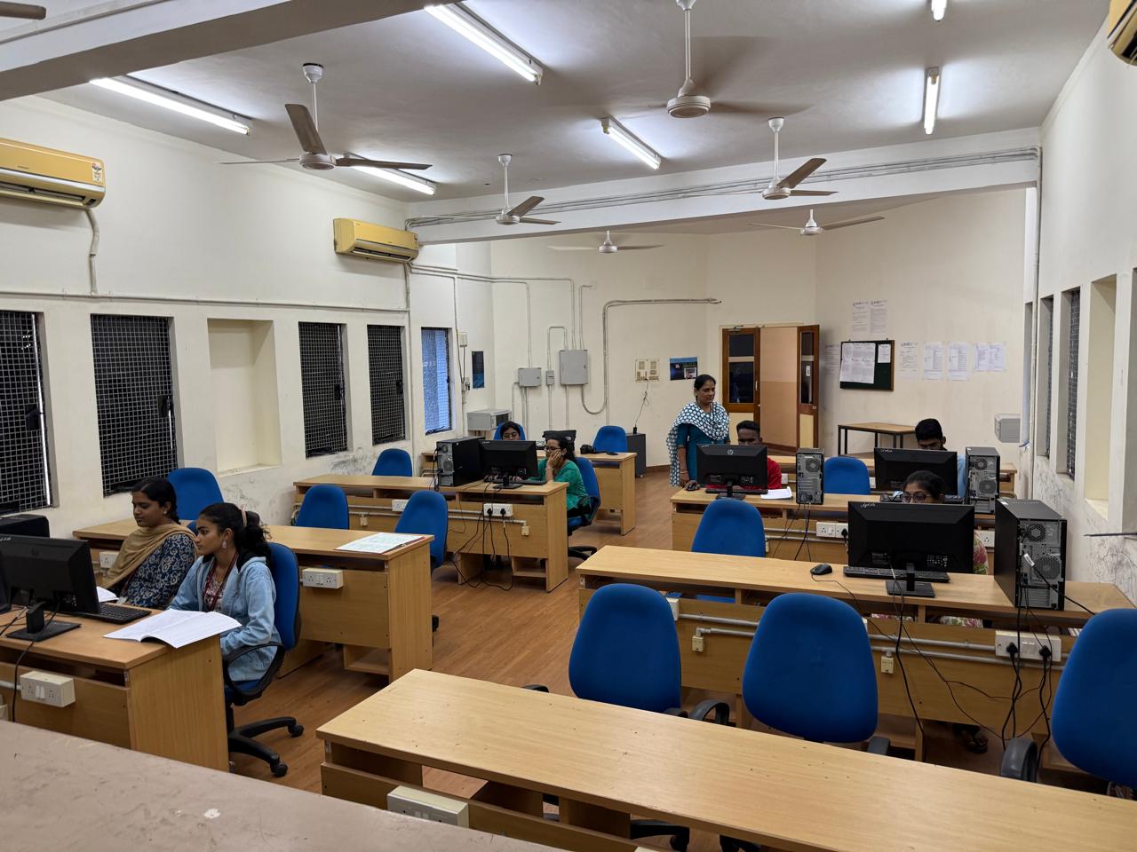 The database laboratory facilitates the conduct of Database Management Systems Lab, Programming and Data Structures lab, Operating Systems lab, Compiler lab and Object Oriented Programming lab. Apart from conducting regular lab sessions, the laboratory facilitates conduct of hands-on workshops, seminars, various coding & design competitions and training for students and faculty of the department.This lab is fully air conditioned and equipped with 40 desktop computers with the required software, LCD Projector with screen, a printer and UPS (3 nos.). The lab also has an Intel Xeon W2102 2.9GHz, Nvidia GeForce RTX 2080 Ti 11 GB GPU workstation, which can be used for carrying out projects and research work in areas like Image and Video processing, computer vision, data analytics, big data etc.