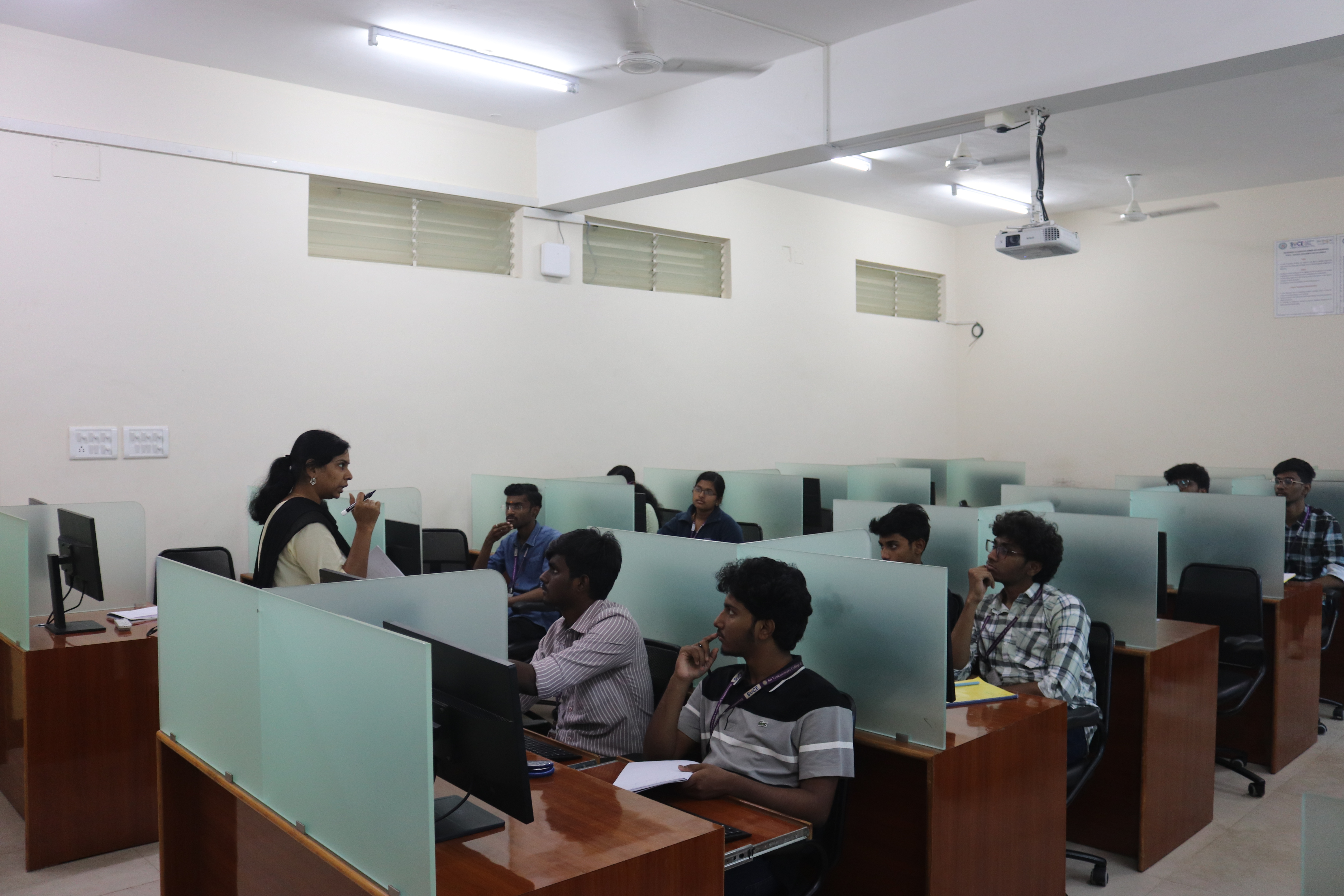 The Software Engineering Lab-A and Lab-B are two adjoining rooms equipped with state-of-the-art hardware and software. All the systems in the lab are installed with Fedora as well as Microsoft Windows Operating System. The Students learn and implement the concepts of Software Engineering using the open source UML tools like Argo UML and Star UML for designing and modelling activities.The lab is equipped with Desktop Systems and LCD Projector. The lab is utilized for conducting other Laboratory Courses such as Programming for Problem Solving, Data Structures Lab, Security lab and User Interface Lab, and for conducting various technical events.